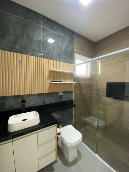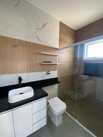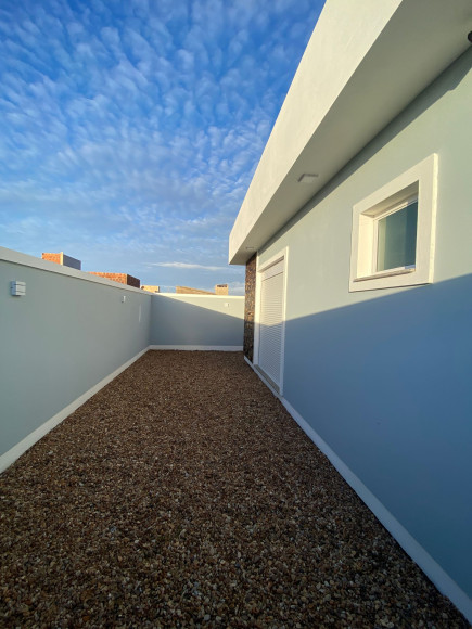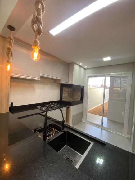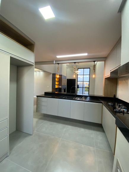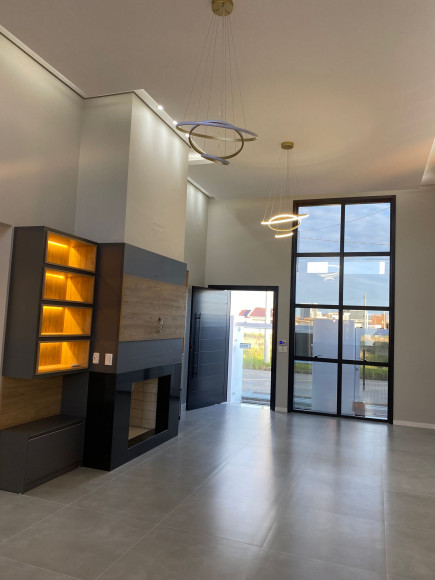 Linda residência em alvenaria e laje, com 147m² de área construída, contando com 3 dormitórios, sendo 1 suíte, banheiro social, sala de jantar, sala de estar e cozinha em conceito aberto e móveis planejados, a cozinha dispõem de churrasqueira e a sala conta com uma linda lareira. O Imóvel possui também, lavanderia, pátio e garagem para 2 carros, além da laje, forro de gesso com uma belíssima iluminação, sistema de água quente em todo o imóvel, esperas para ar condicionado, portão eletrônico, câmeras de monitoramento e alarme.