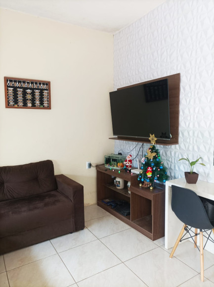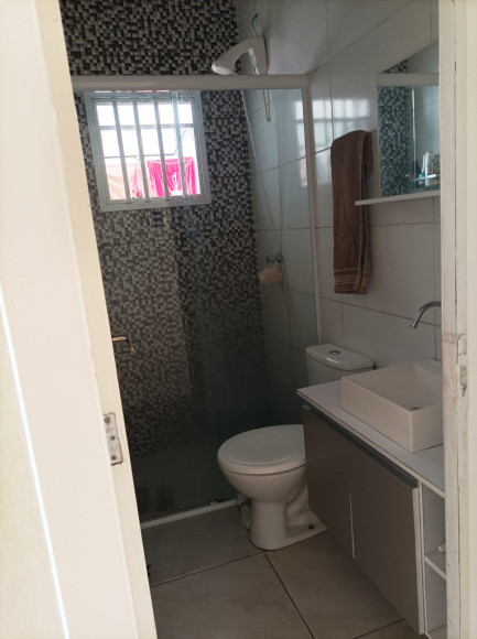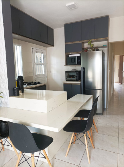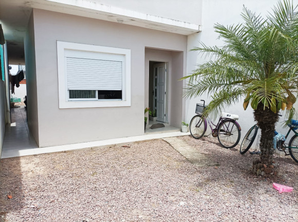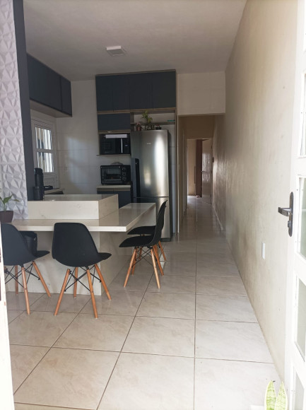 Casa de alvenaria, laje e telhas com estrutura para segundo piso, contendo 02 dormitórios, sala e cozinha conjugadas e banheiro.