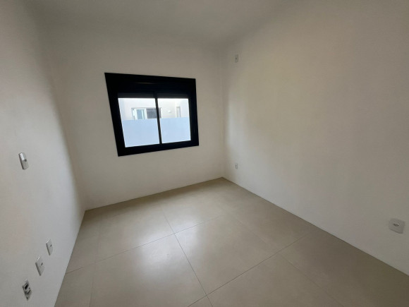 Casa de alvenaria e laje com piso porcelanato e gesso contendo dois dormitórios, sala e cozinha conjugadas, lavanderia e banheiro. Abrigo para carro