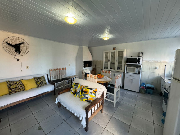 Casa de alvenaria com forro e telhas de brasilit, o imóvel possui 1 dormitório, sala e cozinha conjugadas e 1 banheiro. Terreno medindo 10x30. Perto da Lagoa. Na parte da frente possui um chalé com 1 dormitório, sala, cozinha e banheiro.