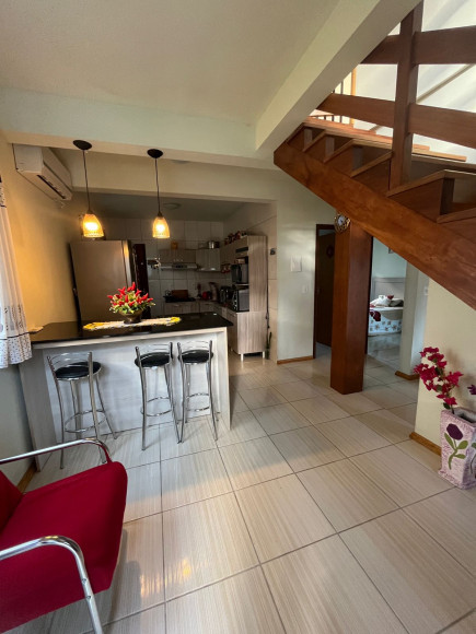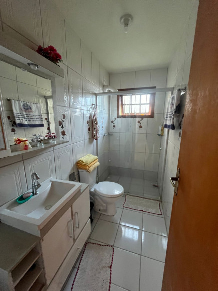Sobrado contendo sala de estar, sala de jantar, 01 dormitório, cozinha e banheiro. Na parte superior conta com 02 dormitórios, sala e banheiro,