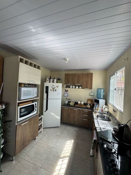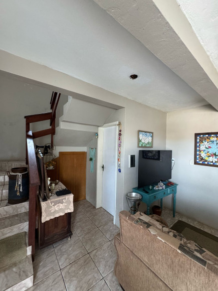 Sobrado com 130m² contendo no pavimento térreo sala de estar com lareira, sala de jantar, cozinha, 01 banheiro e garagem, e no pavimento superior 03 dormitórios, sendo um deles com sacada, 01 banheiro, pátio grande nos fundos. Terreno com 300m², medindo 10x30. Imóvel apto a financiamento.