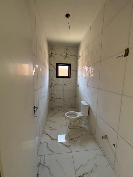 Casa nova, moderna e elegante, com acabamentos de alto padrão. Possui revestimentos em porcelanato e mármore, garantindo sofisticação e durabilidade, além de teto rebaixado em gesso. As aberturas em alumínio com persianas proporcionam excelente iluminação natural e conforto. O imóvel conta com 2 dormitórios aconchegantes, 1 banheiro, uma sala aconchegante com lareira e uma cozinha funcional equipada com churrasqueira, perfeita para receber amigos e familiares.
