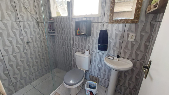 Casa de alvenaria contém: cozinha, sala, 02 dormitórios, lavanderia, varanda e garagem.