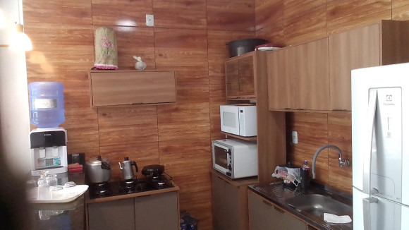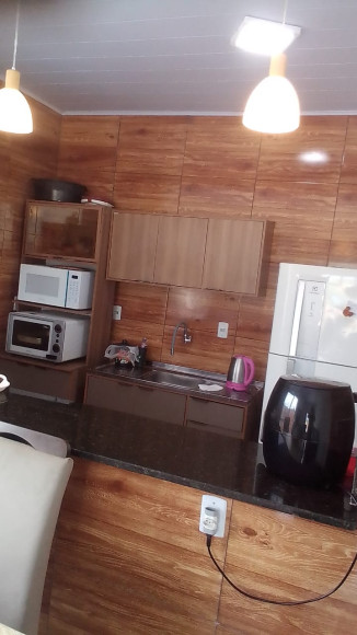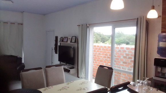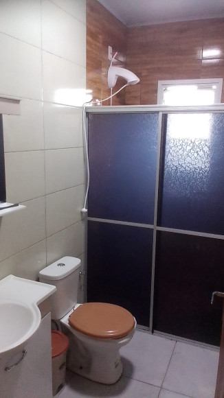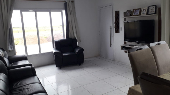 Imóvel no Loteamento Fazenda do Sobrado Residência em alvenaria, com forro em PVC e cobertura de telhas. O imóvel conta com três dormitórios, sala de estar integrada à sala de jantar, cozinha com bancada e banheiro equipado com box. Na parte dos fundos, há um espaço coberto com churrasqueira, lavanderia e um segundo banheiro. Terreno medindo 5,75 metros de frente por 32,00 metros de profundidade.