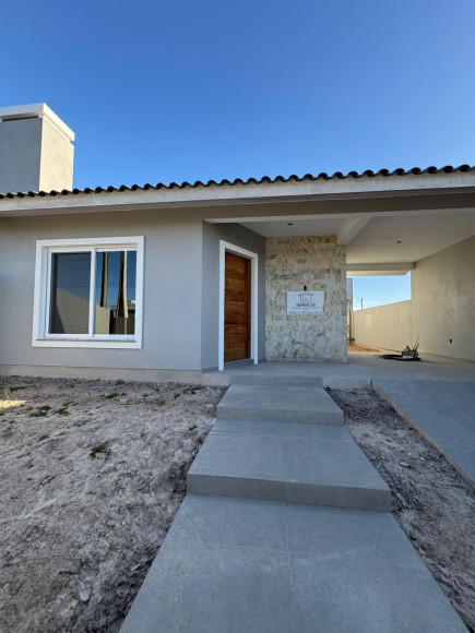 Casa de alvenaria ,sala e cozinha conjugadas com lareira e churrasqueira na área dos fundos, 2 quartos ,1 deles suíte, mais um banheiro social, garagem para o carro