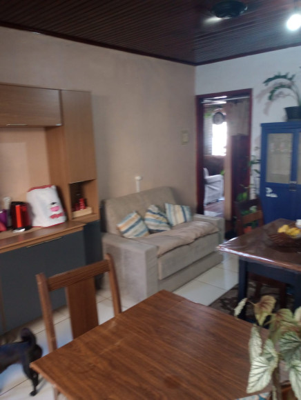 Casa de Alvenaria ,Casa da frente: com 2 dormitórios ,sala ,cozinha ampla ,banheiro, despensa e lavanderia .Casa dos fundos: 1 dormitório ,Sala/cozinha conjugada ,Banheiro e uma Área grande com churrasqueira .