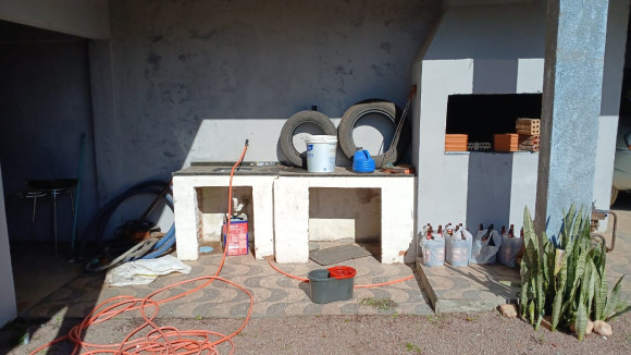 Sobrado em alvenaria e laje, contendo na parte de inferior: 02 dormitórios, sala e cozinha conjugados com rebaixamento em gesso, banheiro, garagem e piscina. Na parte de superior contém: 03 dormitórios e 01 banheiro.