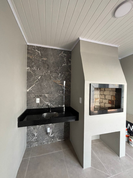 Casa de Alvenaria com excelente padrão de construção com 2 dormitórios ,sala e cozinha integradas ,banheiro moderno ,quiosque com churrasqueira..