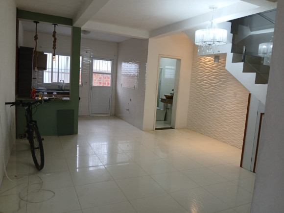 Lindo sobrado, contendo no pavimento inferior: 1 dormitório, sala e cozinha conjugadas, (sendo a cozinha com móveis planejados) e pátio. No pavimento superior: 1 sala de estar, 02 dormitórios, sendo 01 suíte. Na parte frontal do imóvel, possui uma peça com possibilidade de uso comercial.