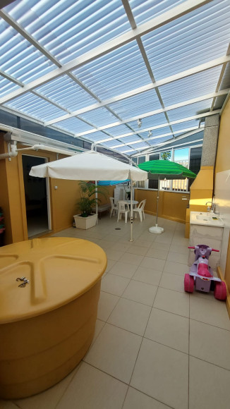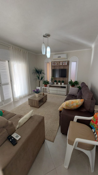 Casa de alvenaria e laje, com paredes duplas de tijolo maciço. Casa da frente possui 2 dormitórios, sendo uma suíte, sala de estar, sala de jantar, cozinha, banheiro, lavanderia e área coberta com churrasqueira, que da acesso a casa dos fundos, que possui 2 dormitórios, sala, cozinha e lavanderia. Terreno 12x32, com espaço para estacionamento, amplo jardim e poço artesiano.