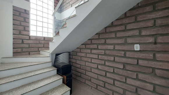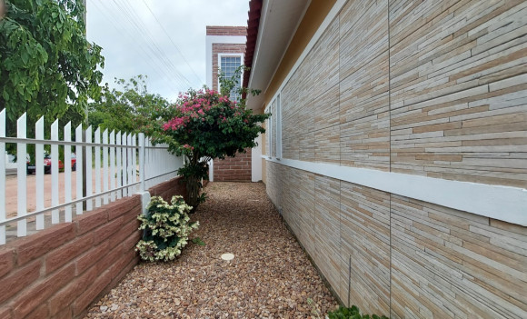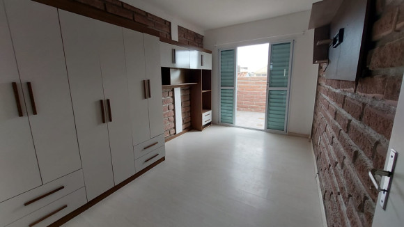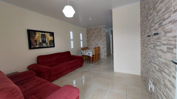 Casa de alvenaria contendo três dormitórios, sendo uma suíte com sacada, sala de estar e de jantar conjugadas, cozinha com móveis planejados e churrasqueira, banheiro social, lavanderia e duas garagens, uma fechada para carro e outra fechada com vidro. Aceita troca.
