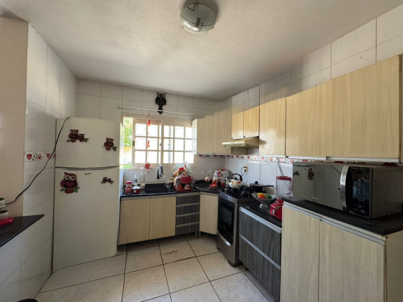 Sobrado de alvenaria: 1º piso: 01 dormitório, sala, cozinha, banheiro e sala comercial. 2º piso: Em construção (inacabado), com 02 dormitórios, sala de estar e jantar, cozinha e banheiro.