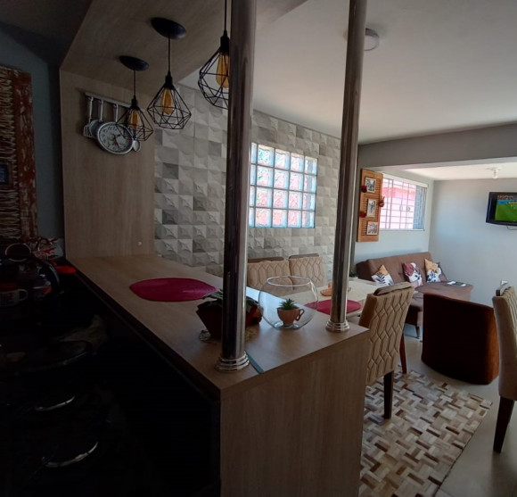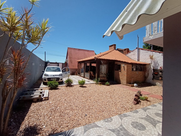 02 IMÓVEIS (CABANAS) *Cabana dos fundos: 03 dormitórios (sendo 01 suíte com closet, 01 dormitório, na parte superior e 01 quarto térreo) , 2 banheiros, sala de estar com bar com dois ambientes, sala de jantar e estar conjugadas, cozinha com móveis sob medida estilo americano, lavanderia e sacada com vista para lagoa da suíte. (parte inferior de alvenaria) *Cabana da frente: 2 dormitórios ( 01 no mezanino), sala e cozinha, banheiro e quiosque para 02 carros com churrasqueira, pia todo fechado em vidro. Terreno: 10,30m x 34,80m, todo murado e fechado com interfone na frente, pátio amplo com calçada, a uma quadra da praia da barrinha