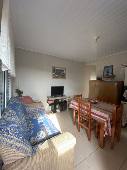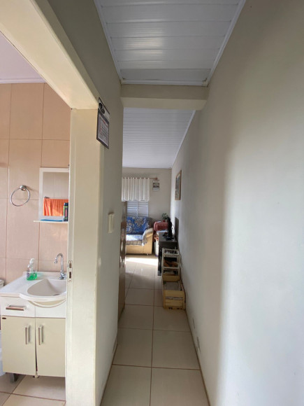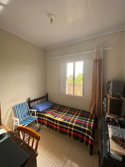 Casa de alvenaria, telhas e forro PVC, contendo 2 dormitórios, sala/cozinha, banheiro, abrigo para o carro e pátio.