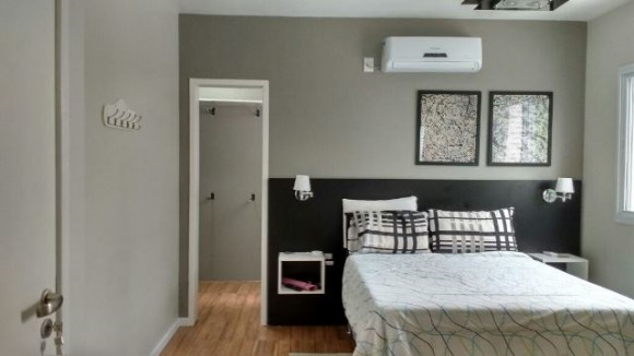 Excelente sobrado: Parte Térrea: sala, copa, cozinha, banheiro, lavabo, área gourmet com churrasqueira e pia, lavanderia. 1º Piso: 01 dormitório, 01 suíte com closet ( banheiro com duas cubas), todas as torneiras possuem duplo comando para água quente e fria;- todos os chuveiros possuem sistema de água quente e ou elétrico, instalação elétrica separada por andar, espera separada de hidráulica e elétrica para a parte dos fundos, pátio fechado com 8,5 x 27mt, possui mais de 40 mudas de arvores frutíferas e trepadeiras, todos os quartos e o andar térreo possuem ar condicionado tipo split dimensionado;- a casa possui estrutura para o terceiro andar; sendo que já foi deixado esperas para hidráulica e elétrica. Pergolado coberto na frente do imóvel com policarbonato para dois carros, estrutura para construção de andar acima dele, os móveis que são planejados (quarto casal, balcão cozinha, balcão churrasqueira, balcão pias suíte, balcão pia lavabo) ficam dentro do valor e pertencem a casa. Móveis podem ser negociados a parte.