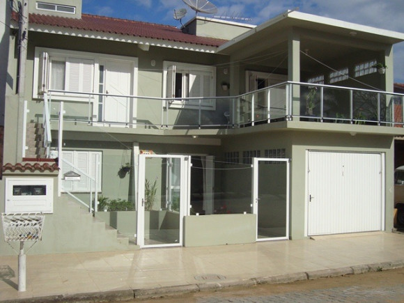 Sobrado em alvenaria laje e telha cerâmica: Casa térrea: sala de estar com dois ambientes, sala de jantar, cozinha com balcão, área de luz, banheiro. Fundos uma área toda fechada com vidro, churrasqueira com balcão lavanderia e banheiro. Garagem fechada com pátio todo calçado. Casa 1º piso: 01 suíte, 02 dormitórios, sala de estar com lareira, copa-cozinha, área de luz, banheiro, mezanino em madeira e sótão. Sacada frontal ampla, toda em alumínio e vidro.