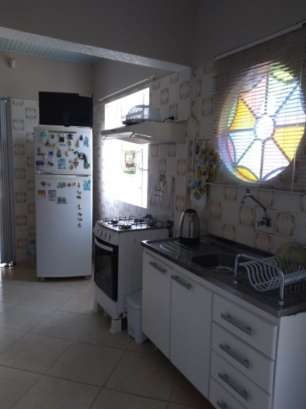 Casa de alvenaria, forro e telha: Hall de entrada, sala de estar, sala de jantar, cozinha, escritório, banheiro com box, 02 dormitórios de casal. Fundos: área fechado com churrasqueira e banheiro, 01 peça e um galpão. Terreno: 6,00 m x 60,00, com variedade de árvores frutíferas. Imóvel Central.