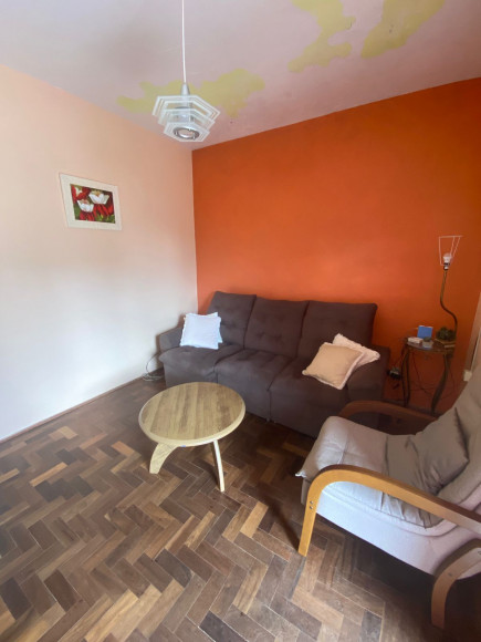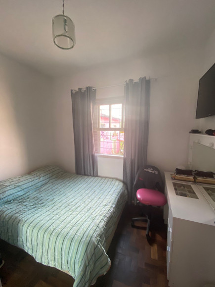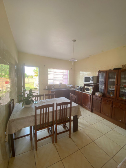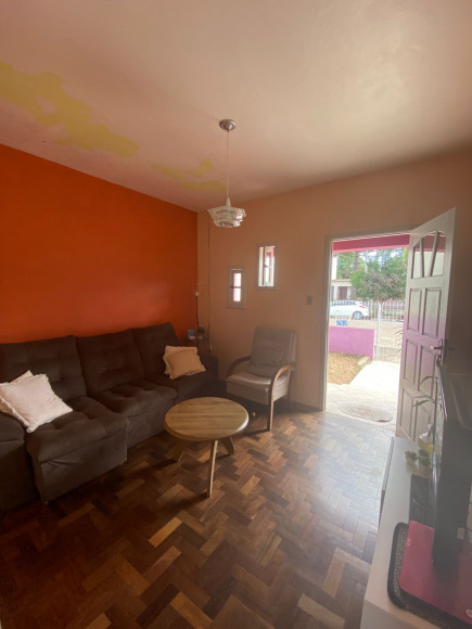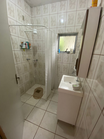 Casa de alvenaria e laje com 02 dormitórios, 01 banheiro, sala, cozinha e garagem fechada. Amplo pátio todo murado.