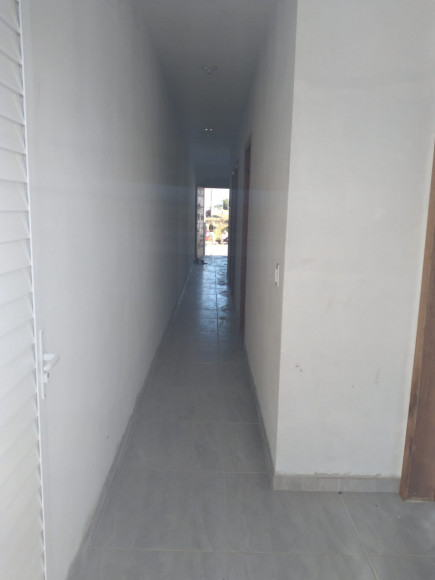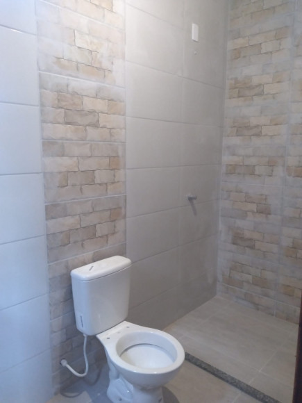 Casa de alvenaria laje: 01 suíte, 02 dormitórios, sala de estar com lareira e cozinha com churrasqueira num conceito amplo, banheiro social. Fundos: área de serviço e pátio.