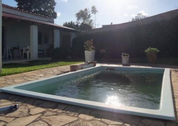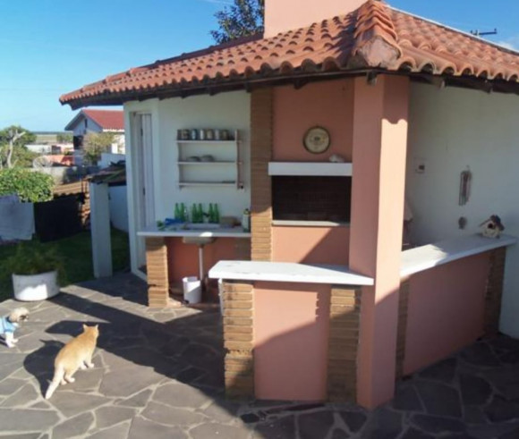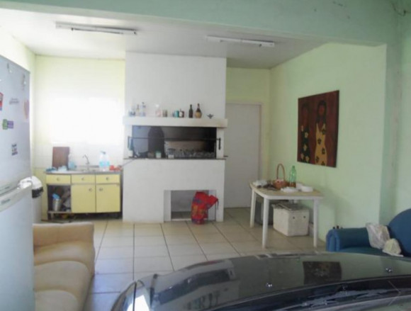 Casa de alvenaria e laje, contendo: 4 dormitórios, sendo 1 suíte, sala de estar e jantar, sala de TV com lareira, banheiro social, cozinha, pátio amplo com piscina, garagem com churrasueira e vaga para 2 carros. Terreno 12x33. Frente Oeste.