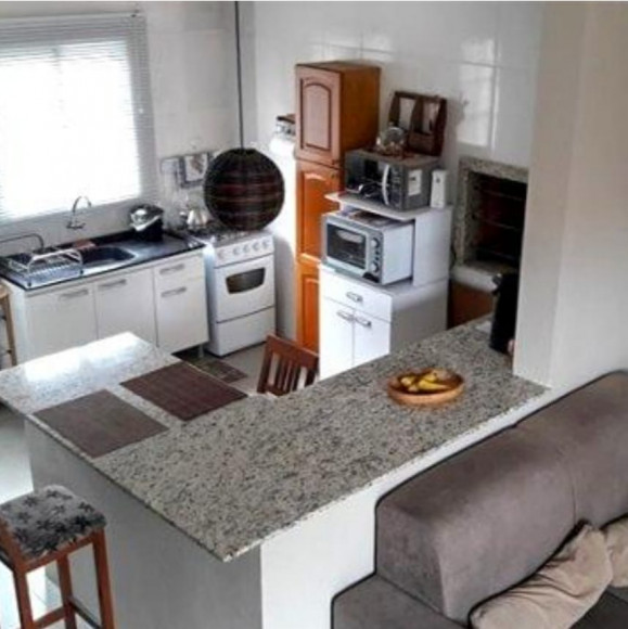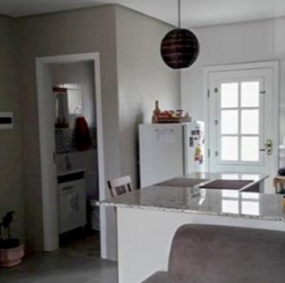 Sobrado em alvenaria com amplas aberturas, bem iluminado. No térreo, sala de estar com lareira e cozinha integrada com bancada em granito e churrasqueira, lavabo e área de serviço, no 1° piso, 02 dormitórios e banheiro. Anexo nos fundos com mais 02 dormitórios, sala, cozinha e banheiro. Local seguro e silencioso a duas quadras da lagoa.